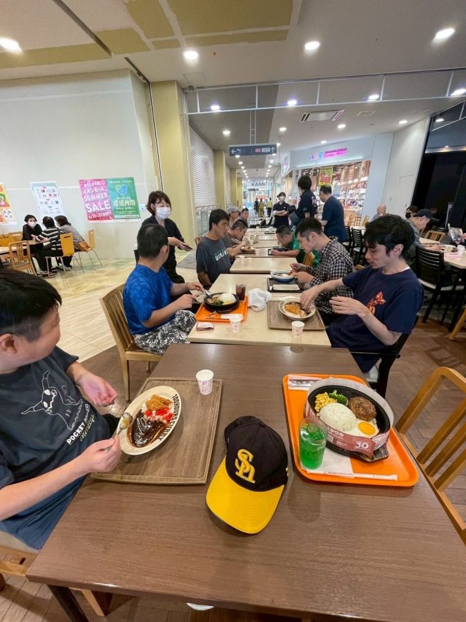 防災体験後はイオンモール福岡のフードコートにて昼食を好きなものを頼み、食べられました😊